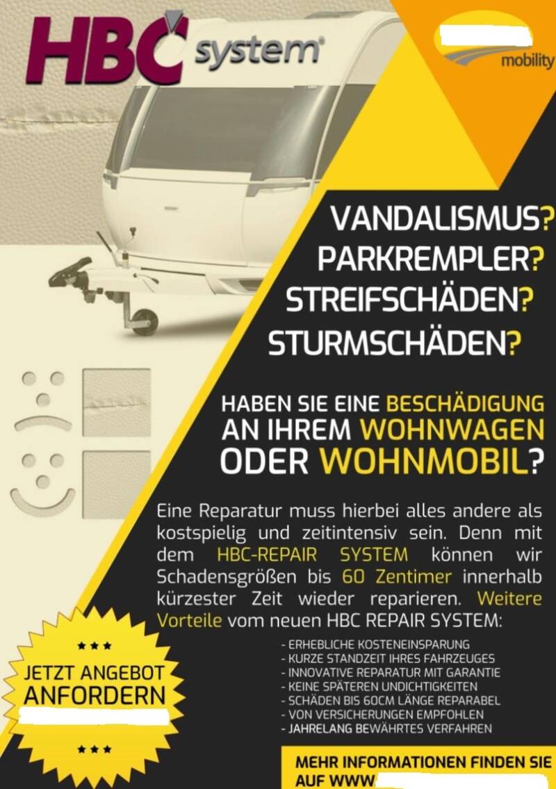 Haben Sie eine Beschädigung an Ihrem Wohnwagen oder Wohnmobil? Schnell ist es passiert, durch Parkrempler, Streifschäden, Vandalismus oder Sturmschäden...
